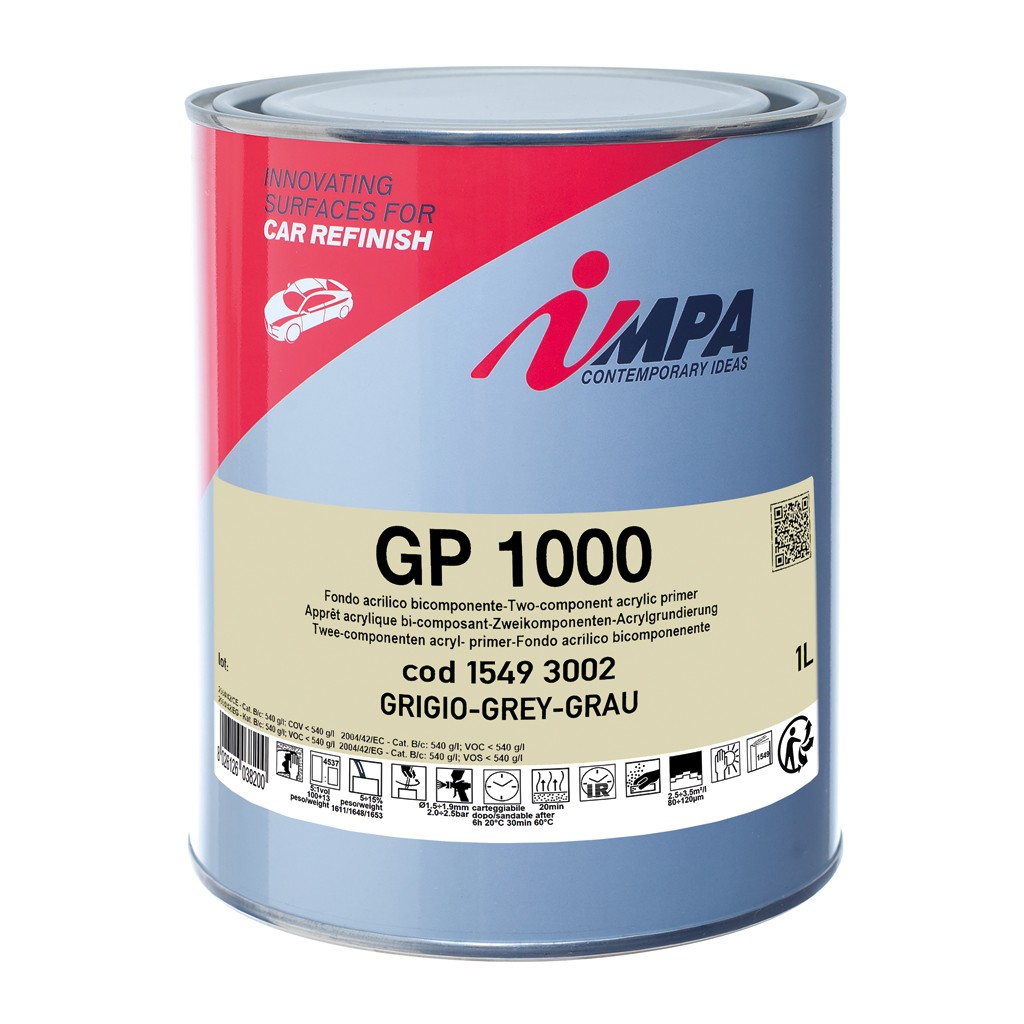 Primer for spray application having a high solid content; it features very quick drying, good filling power, easy dry and wet sanding, good adhesion to iron surfaces, polyester putties and existing paints.