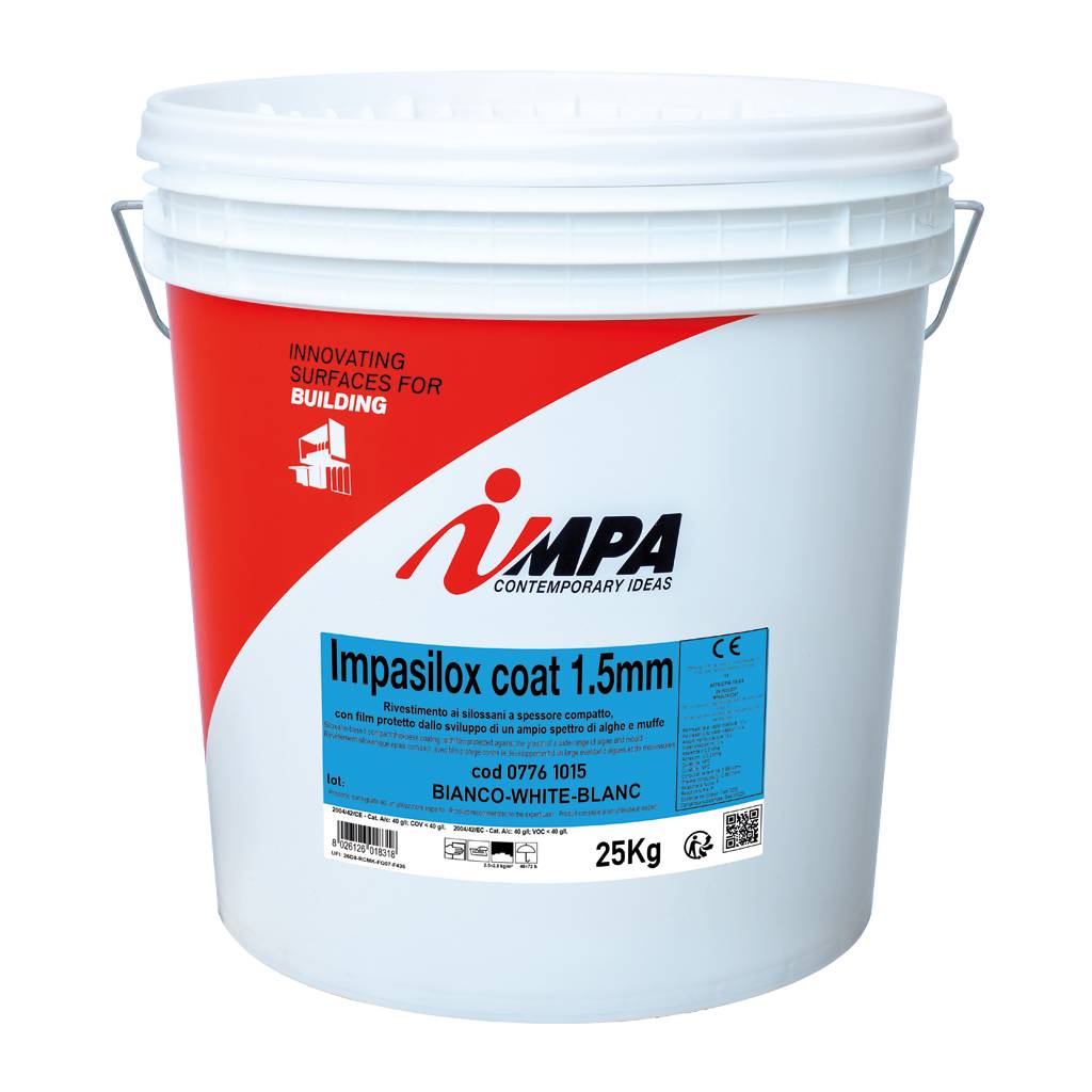 Wall coating with plaster effect, based on siloxane resins, combining the transpirability typical of mineral products with the waterproofing properties of synthetic binders. Special additives make the film of the product protected from the development of a wide range of species of algae and moulds. It offers a compact finish, with great levelling and filling power in case of irregular and nonhomogeneous surfaces. It is an outdoor wall finish, easy to work with, featuring good adhesion to all types of substrate, as well as excellent weathering resistance.
