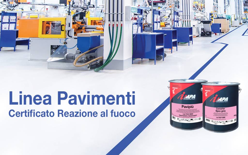 Importanti novità nel ciclo della Linea Pavimenti di IMPA! Con il prodotto EPOX GRES, lo smalto epossidico per pavimenti e PAVIPIU', la finitura poliuretanica trasparente, abbiamo ottenuto la Certificazione di Reazione al Fuoco in classe Bfl. Inoltre, il PAVIPIU' additivato con la Pasta testurizzante per un effetto satinato antiscivolo, ha o...