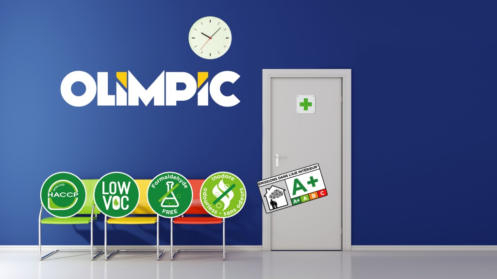 OLIMPIC ha superato i test relativi all’inquinamento dell’aria all’interno di ambienti chiusi, rientrando in CLASSE A+ e quindi con basse emissioni.