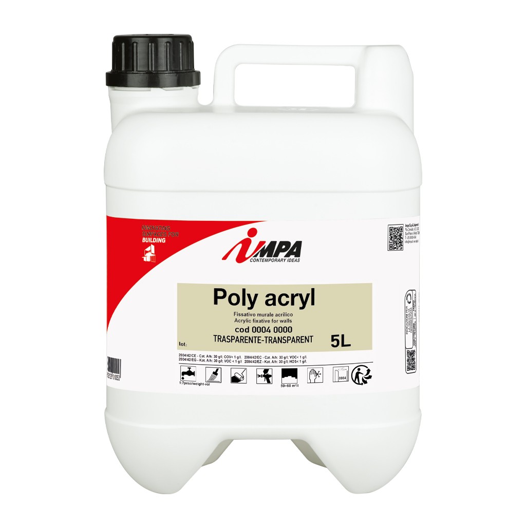 Fissativo-isolante all'acqua a base acrilica, di elevata resistenza agli alcali e forte potere consolidante.